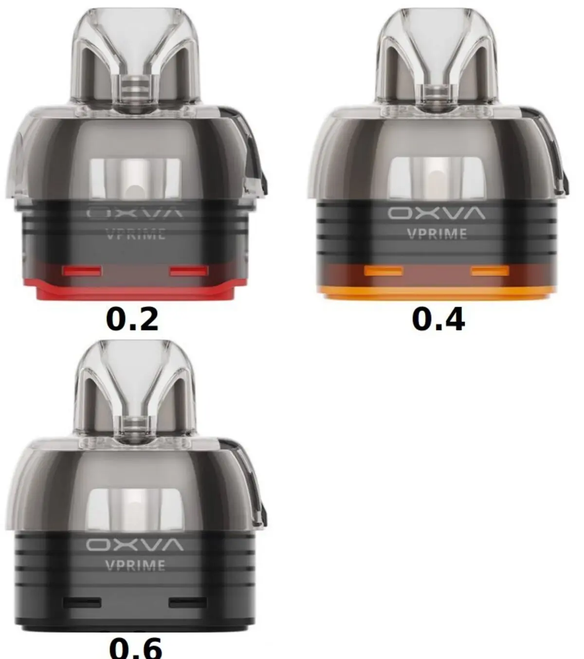 Oxva Vprime pod cartridges are available in 0.2Ω, 0.4Ω, and 0.6Ω resistances for DTL and RDTL vaping, along with a 0.8Ω MTL pod. All incorporate Oxva’s UniTech 2.0 taste technology.