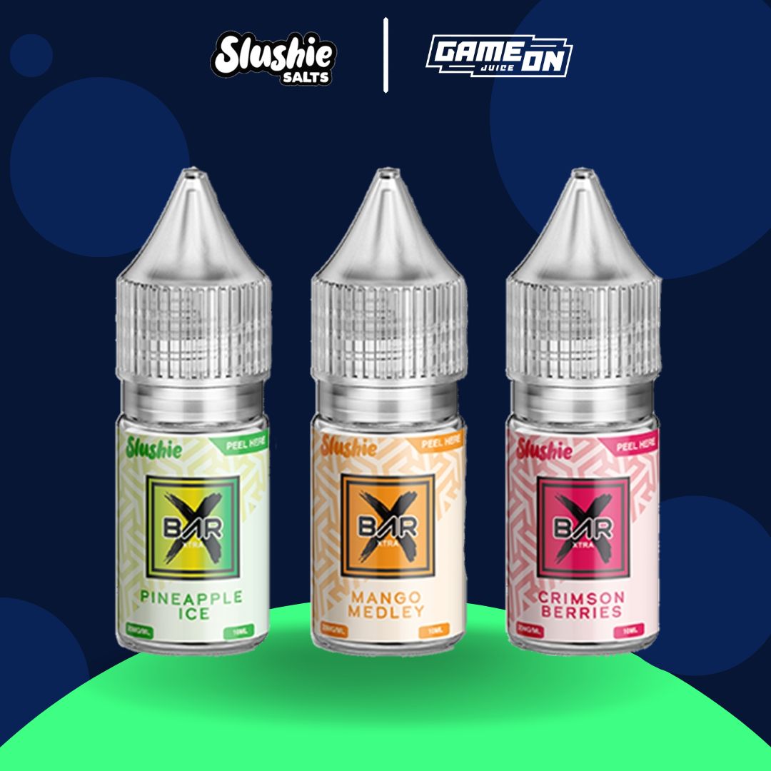 Perfectly balanced in a 50/50 VG/PG blend, Slushie Bar Xtra Nic Salt e-liquids are ideally used for mouth-to-lung vaping with Vape Starter Kits and Pod Vape Kits.